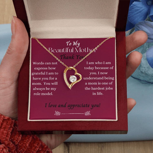 To My Beautiful Mother. Thank You - Forever Love Necklace